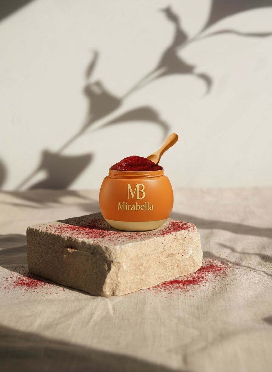 يعطي العكر الفاسي توهجًا ورديًا طبيعيًا للبشرة بفضل خصائصه اللونية النباتية، وهو مثالي لإضفاء إشراقة أنثوية على الوجه والجسم.